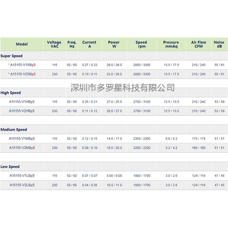 A15155-VDHBLS (115/230V雙電壓) A17251*-VDHBLS (115/230V雙電壓)