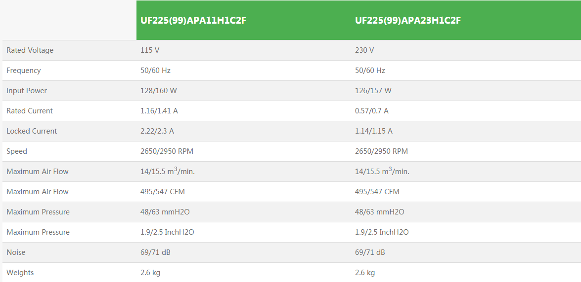 • UF225(99)APA全新原裝臺灣正品福佑小型離心風機排煙機蝸殼注塑機變頻器散熱